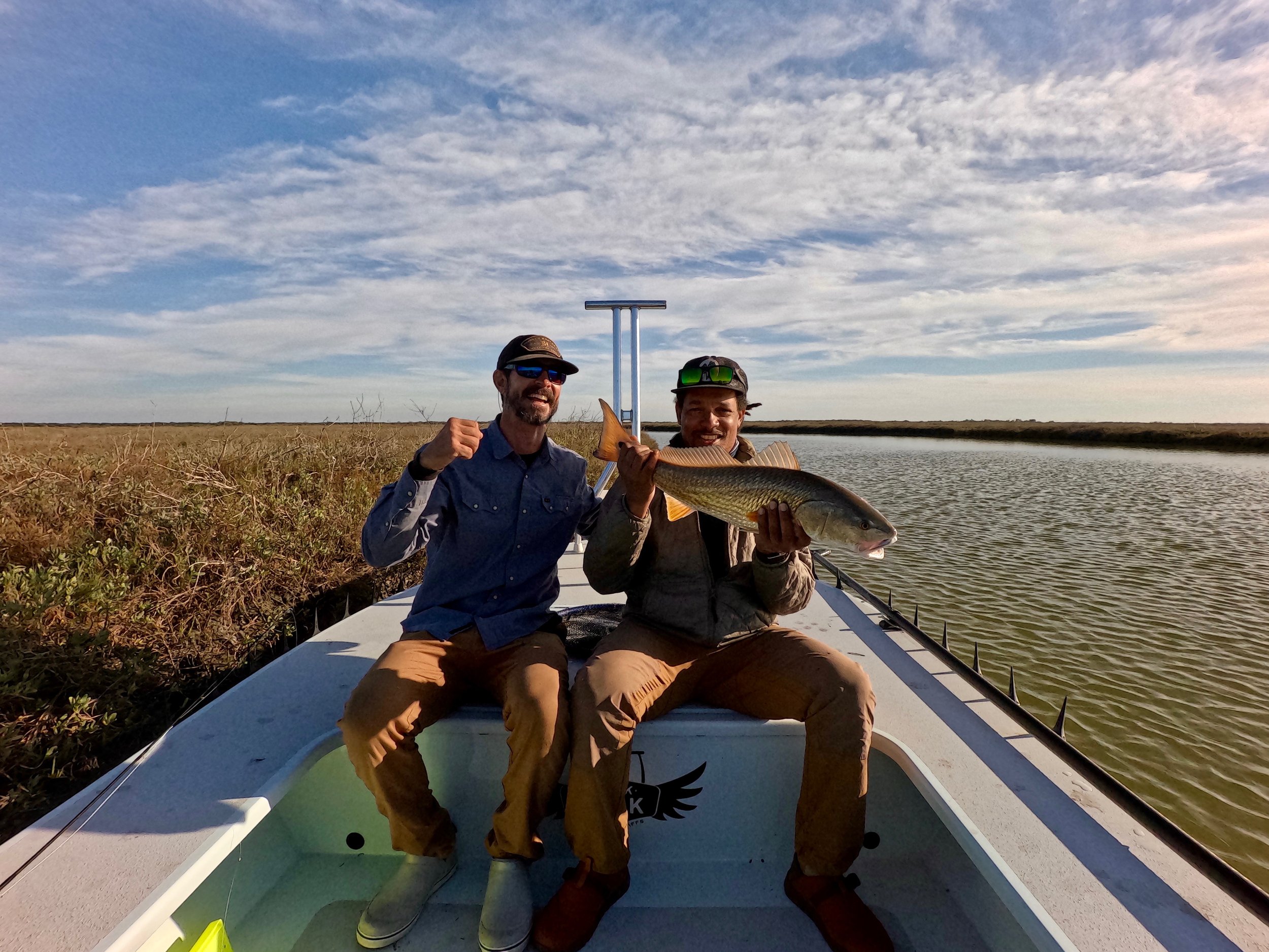 The Texas coast between Port O'Conner and Rockport offers excellent opportunities to sight cast for redfish, as well as occasional shots at black drum, speckled trout, and sheepshead. Sight fishing with a fly on the coast is one the most challenging types of fishing. Therefore, it is recommended to have some experience with fly fishing. You can bring your own equipment or our I can provide rods and flies. Full day and half day trips are available. Click here to book a trip.